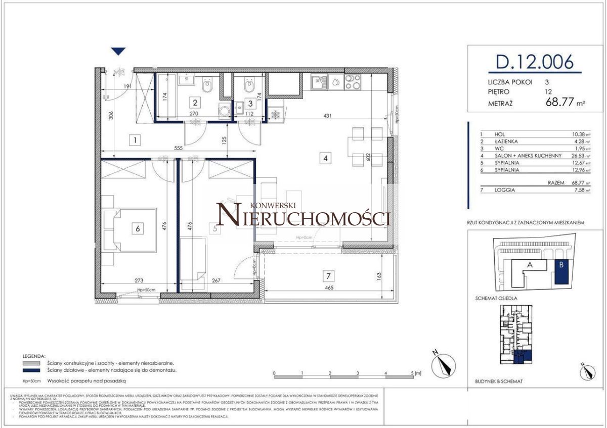 łazienki, WC i przedpokoju. Mieszkanie znajduje się na siódmym piętrze w siedemnastopiętrowym budynku. Oczywiście jest winda. Powierzchnia całkowita mieszkania wynosi 68,67 m2. Do mieszkania przynależy loggia. Inwestycja znajduje się w bliskiej odległości od Ronda Żegrze i blisko do komunikacji tramwajowej. W ofercie posiadamy również mieszkania na innych kondygnacjach, o innych układach oraz o różnych powierzchniach. Lokalizacja zapewnia doskonały dojazd w różne części Poznania, nieopodal inwestycji przystanek tramwajowy oraz autobusowy. Łatwy wyjazd na tzw. Katowicką i Autostradę.